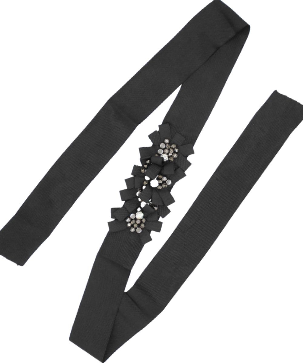 Cod. Art. 49365COL01 cintura grosgrain con centro fiori ricamati nero