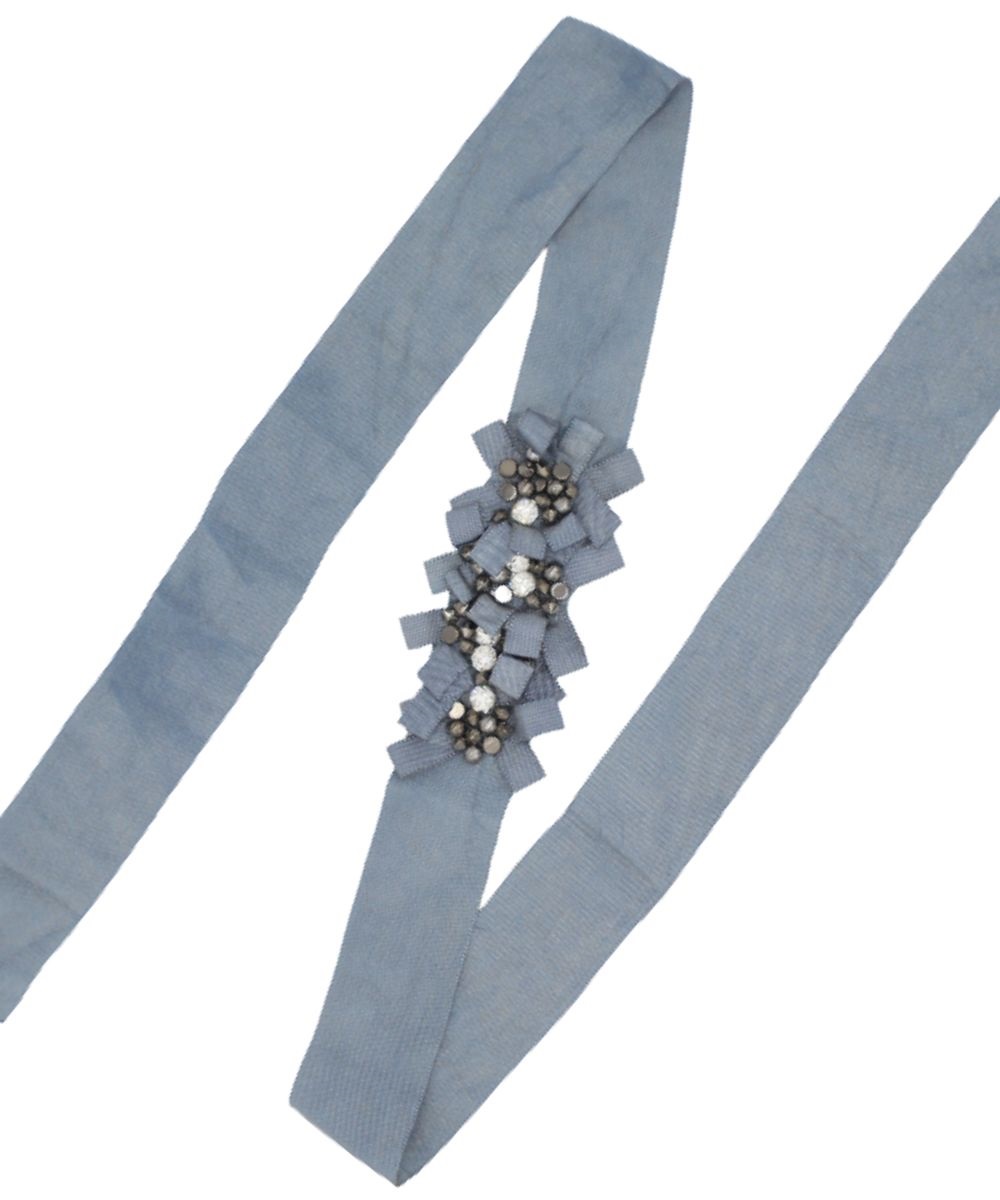 Cod. Art. 49365COL02 cintura grosgrain con centro fiori ricamati grigio