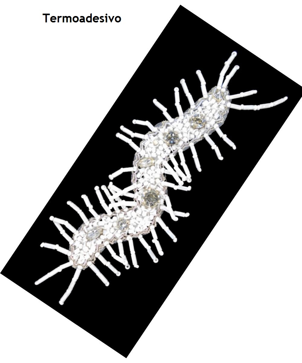 Cod. Art. 49363COL01 millepiedi termoadesivo ricamato con perline bianco