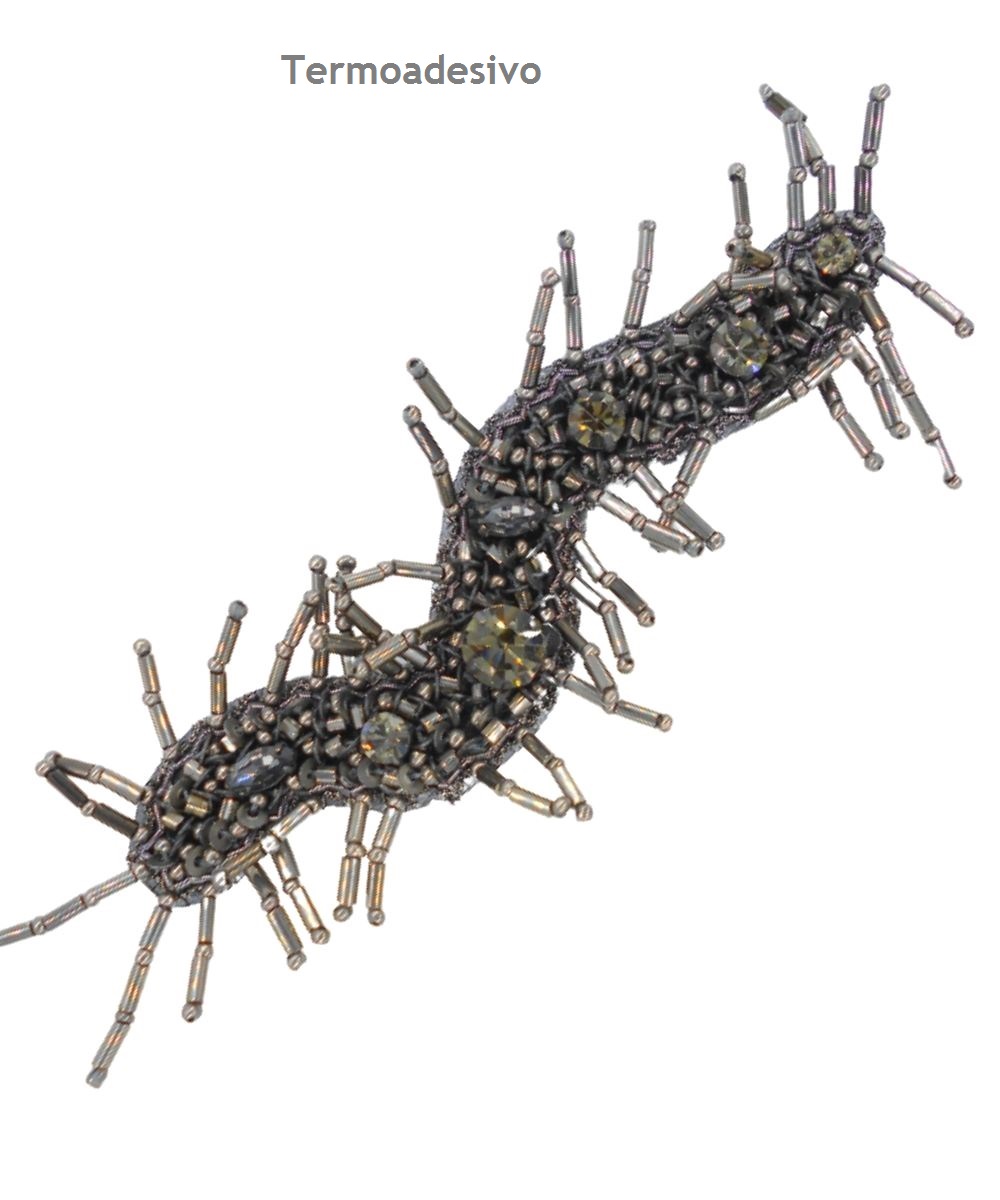 Cod. Art. 49363COL02 millepiedi termoadesivo ricamato con perline argento