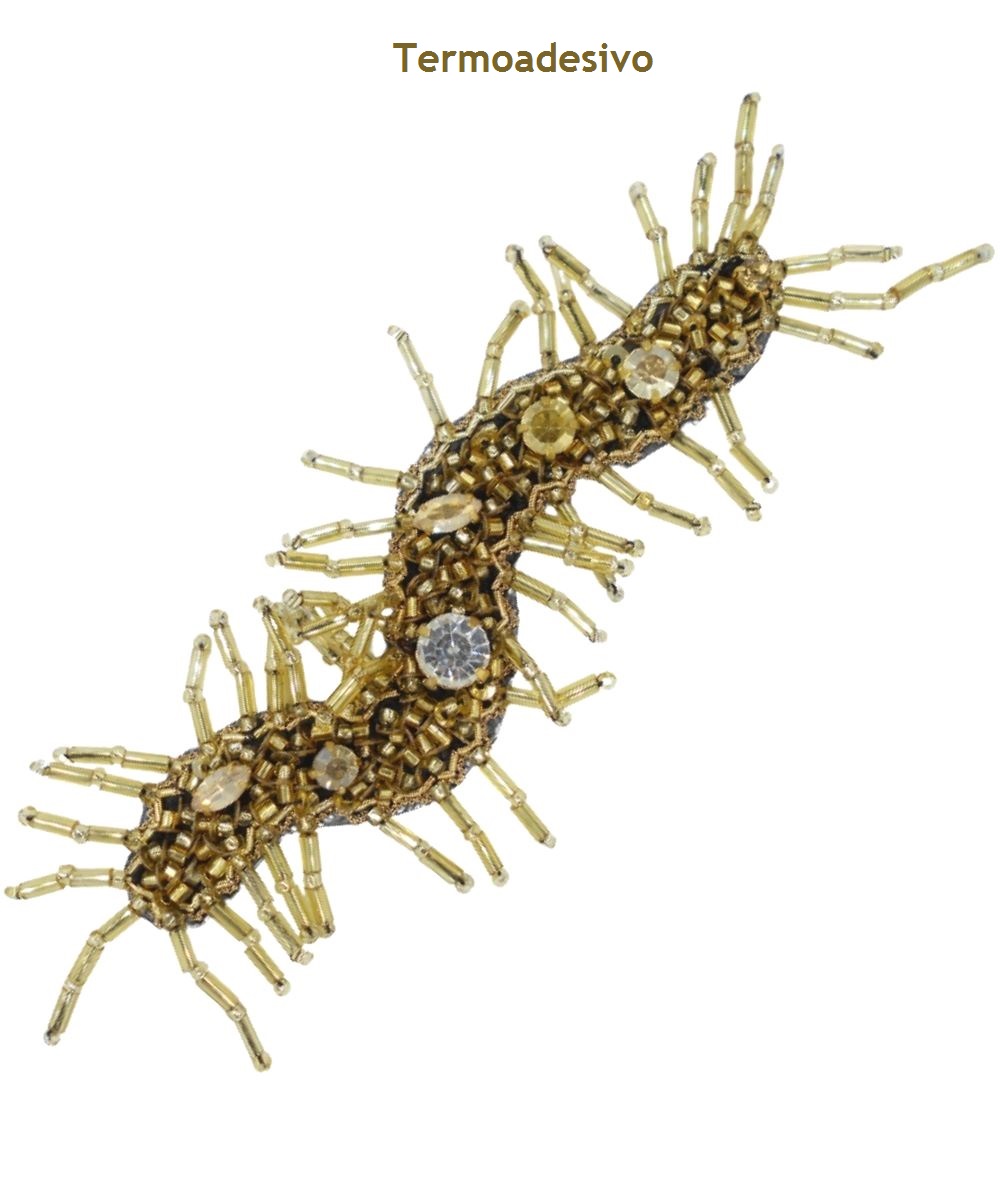 Cod. Art. 49363COL03 millepiedi termoadesivo ricamato con perline oro