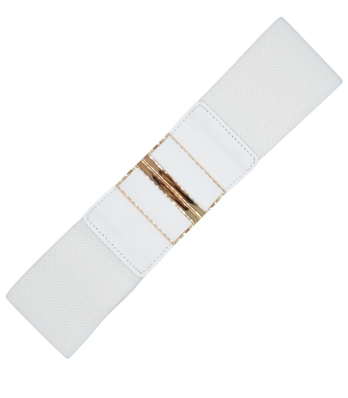 Cod. Art. 42765COL03 cintura elastica bianco lana con chiusura metallo oro