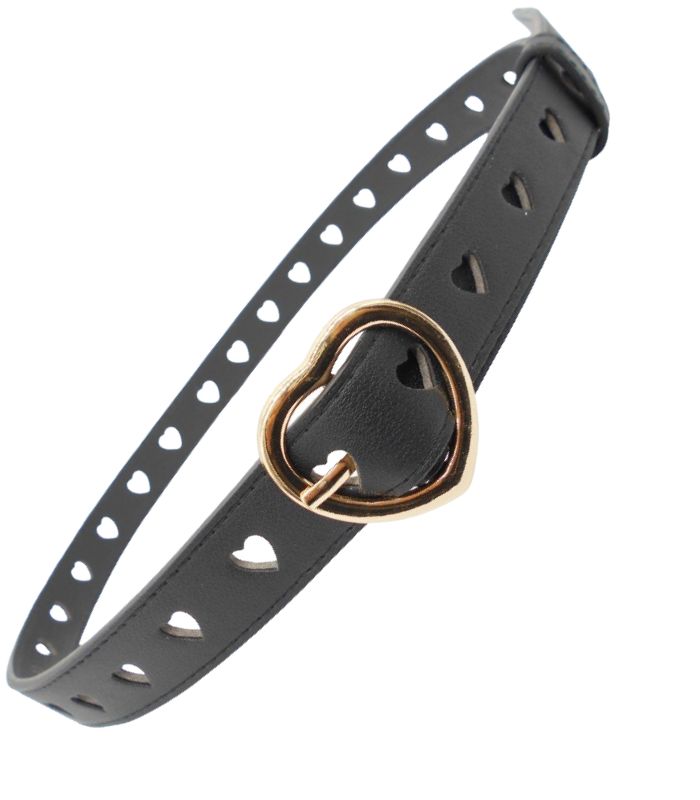 Cod. Art. 42819COL01 CINTURA CUORI ECOPELLE NERA CON FIBBIA CUORE ORO