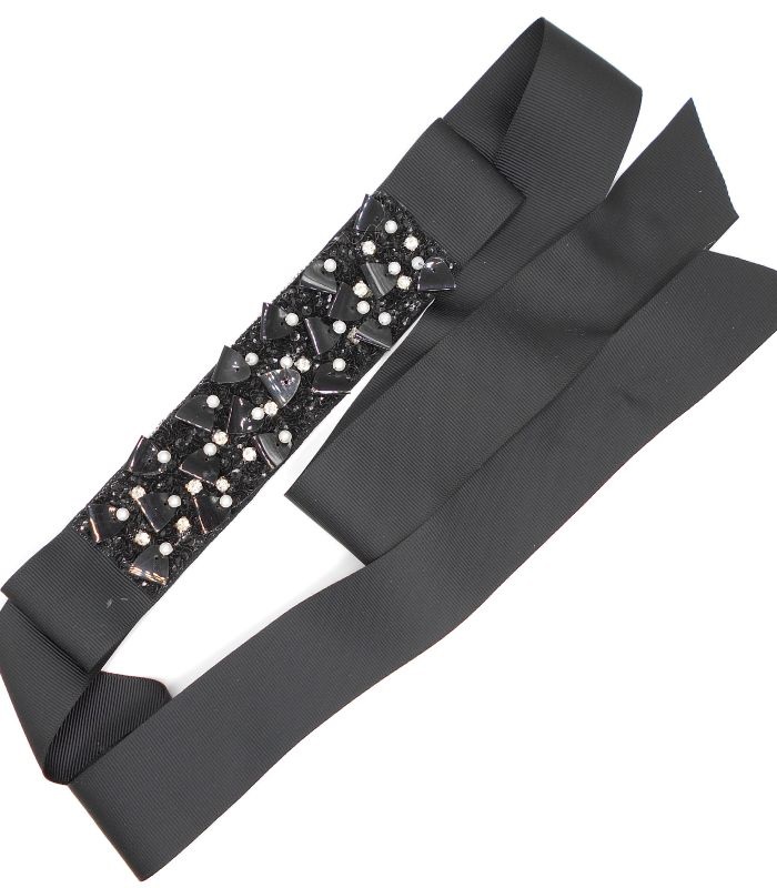 Cod. Art. 78743COL030 cintura grosgrain con ricamo centrale nero