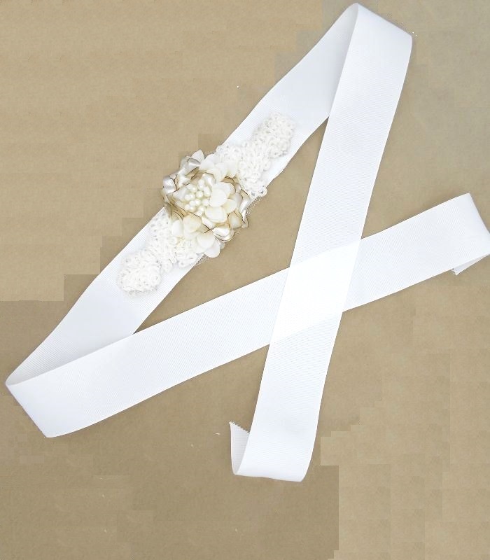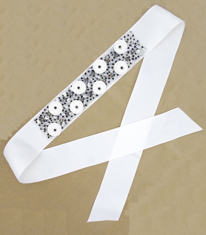 Cod. Art. 78990COL000 cintura grosgrain con ricamo centrale bianco lana