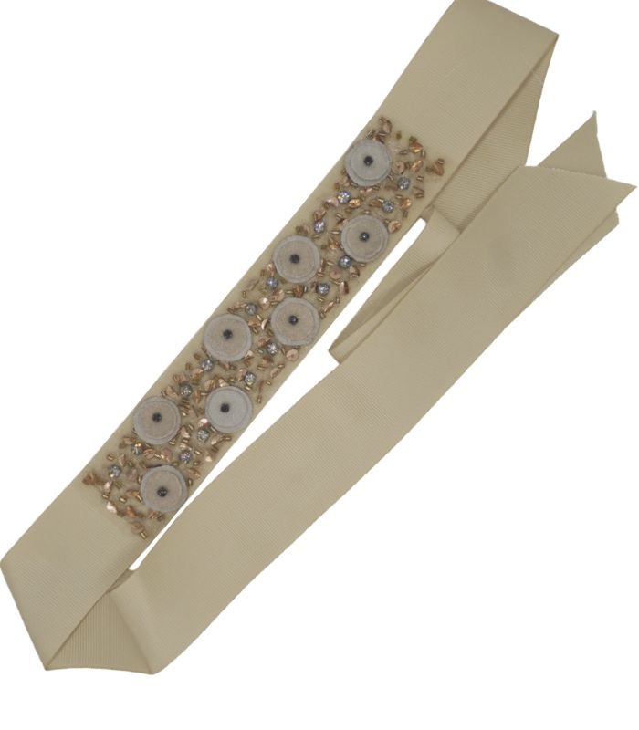 Cod. Art. 78983COL836 cintura grosgrain con ricamo centrale beige