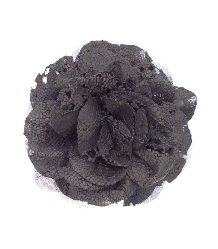 Cod. Art. 29217COL01SP fiore ecopelle e tulle nero dia.16cm circa con spilla