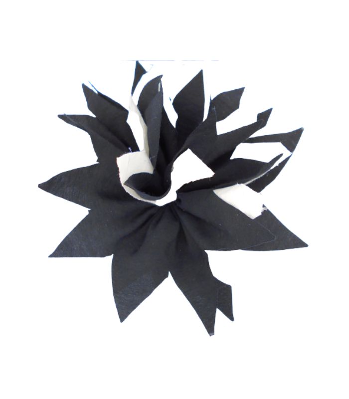 Cod. Art. 29218COL02SP fiore tessuto nero e panna dia.13cm circa con spilla