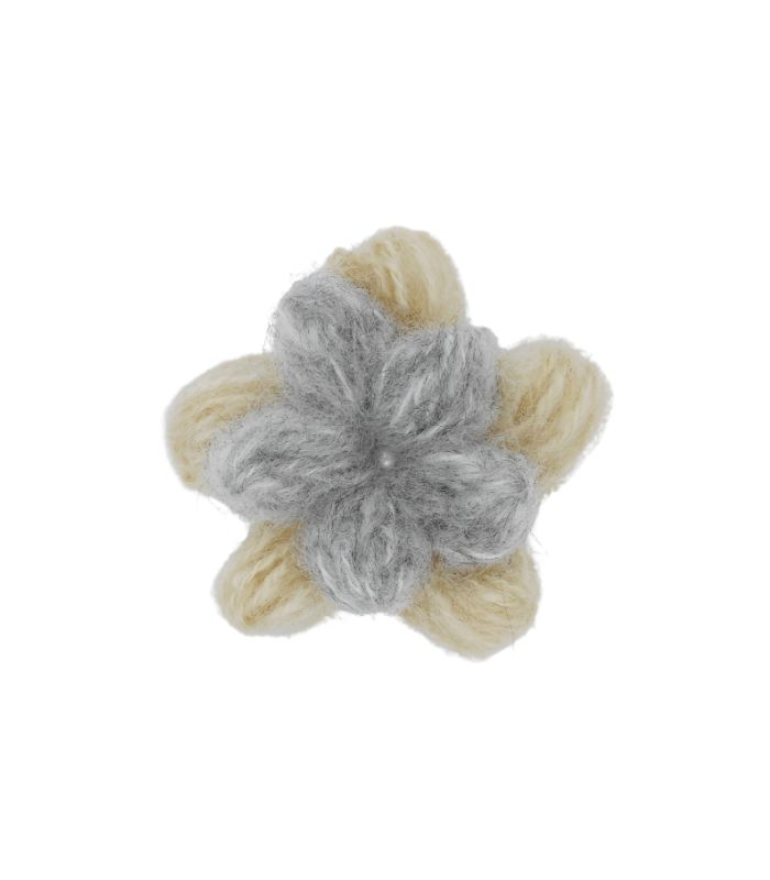 Cod. Art. 00187COL04 doppio fiore mohair con perla dia. 4,5cm circa beige-grigio