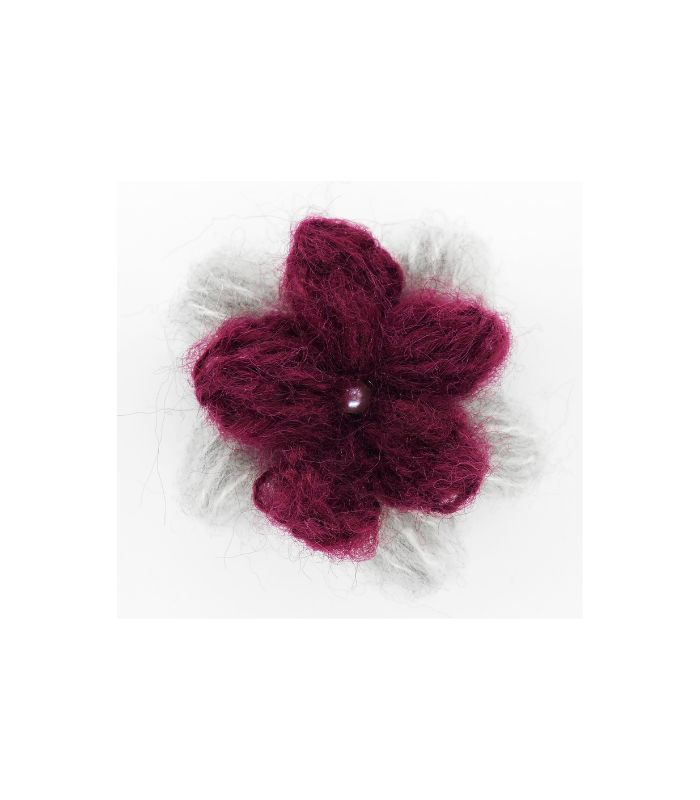 Cod. Art. 00187COL06 doppio fiore mohair con perla dia. 4,5cm circa grigio-prugna