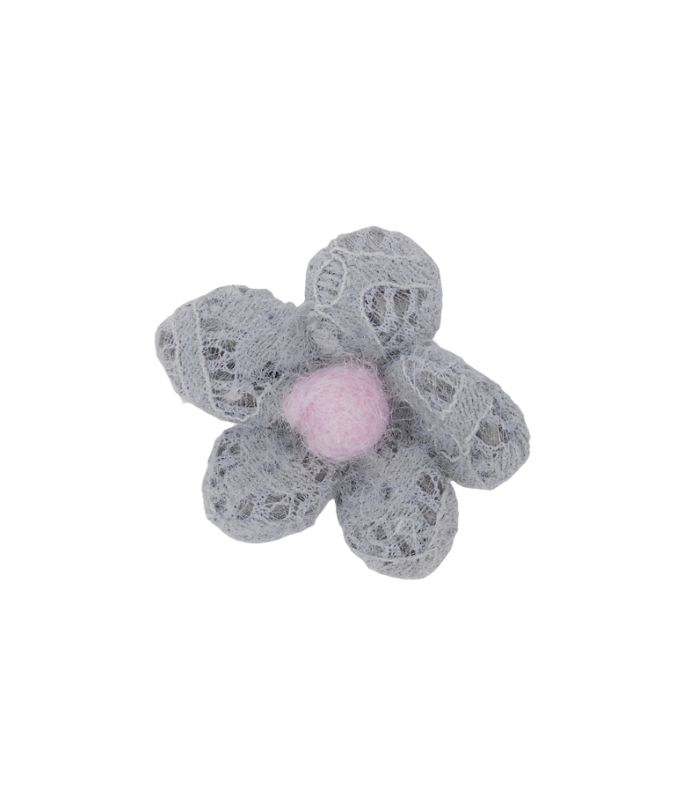 Cod. Art. 00187COL03 doppio fiore mohair con perla dia. 4,5cm circa grigio