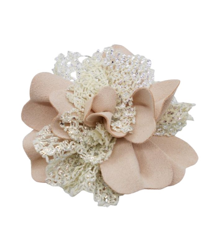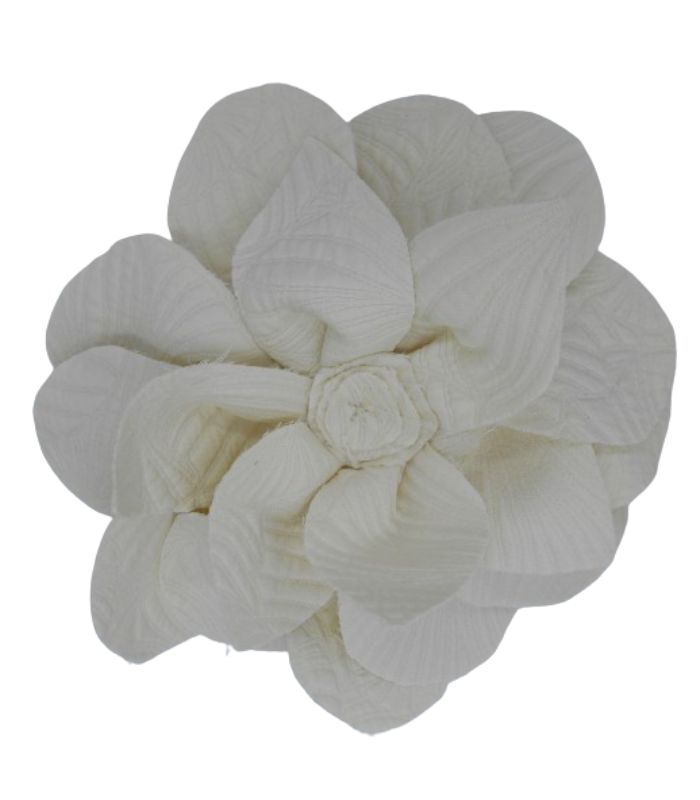 Cod. Art. 29256COL07SP FIORE TESSUTI DIA.10CM CIRCA VAR. PANNA-ARGENTO CON SPILLA