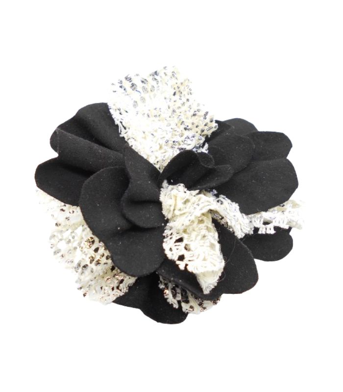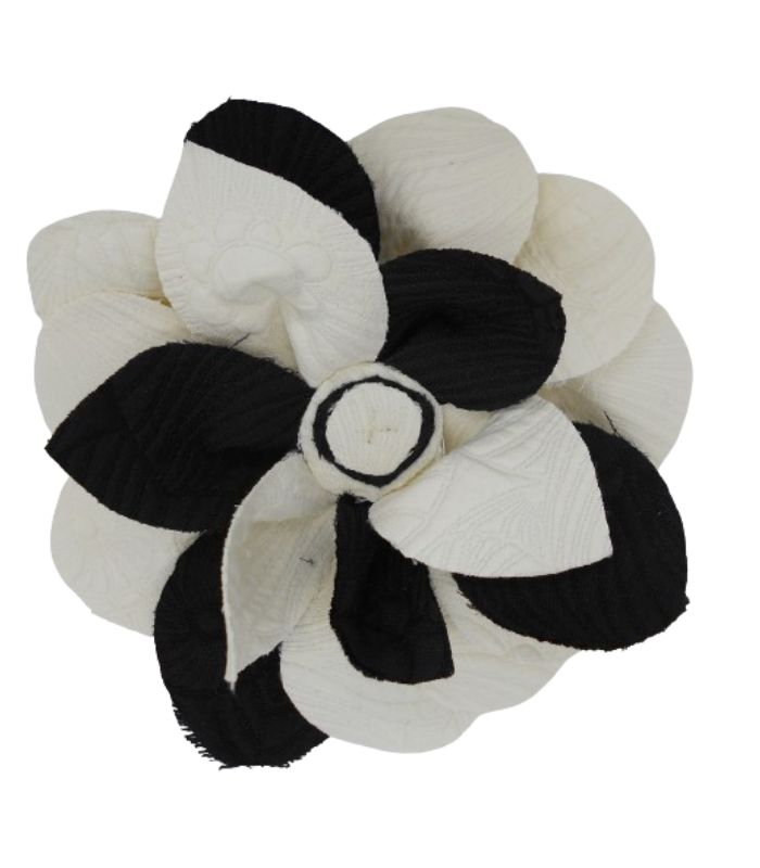Cod. Art. 29259COL01SP FIORE TESSUTI DIA.15CM CIRCA VAR. NERO-PANNA CON SPILLA