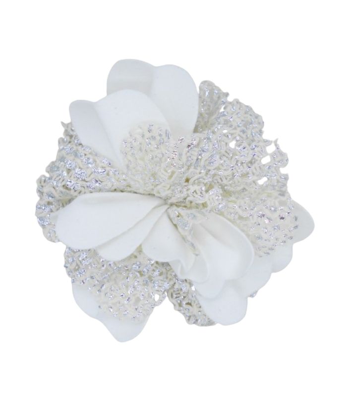 Cod. Art. 29256COL04SP FIORE TESSUTI DIA.10CM CIRCA VAR. ARGENTO CON SPILLA