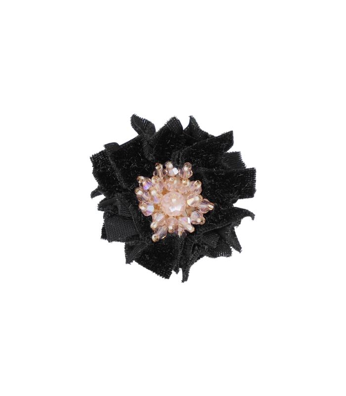 Cod. Art. 29214COL01 fiorellino velluto nero con perline rosa dia.5cm circa