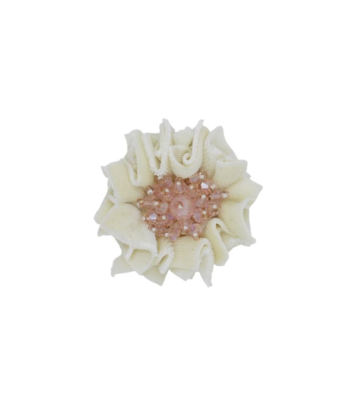 Cod. Art. 29214COL02 fiorellino velluto panna con perline rosa dia.5cm circa