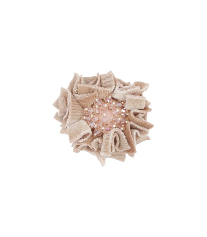 Cod. Art. 29215COL04SP fiore tessuto cammello dia.13cm circa con spilla