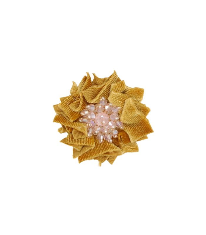 Cod. Art. 29214COL05 fiorellino velluto ocra con perline rosa dia.5cm circa