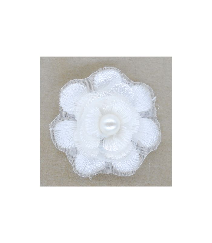 Cod. Art. 42784COL01 fiorellino ricamato con perlina dia. 3cm circa bianco lana