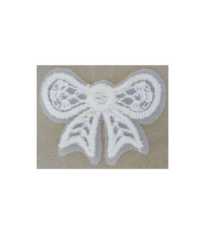 Cod. Art. 79017COL01 fiocco pizzo bianco ottico con fiocco raso bianco lana