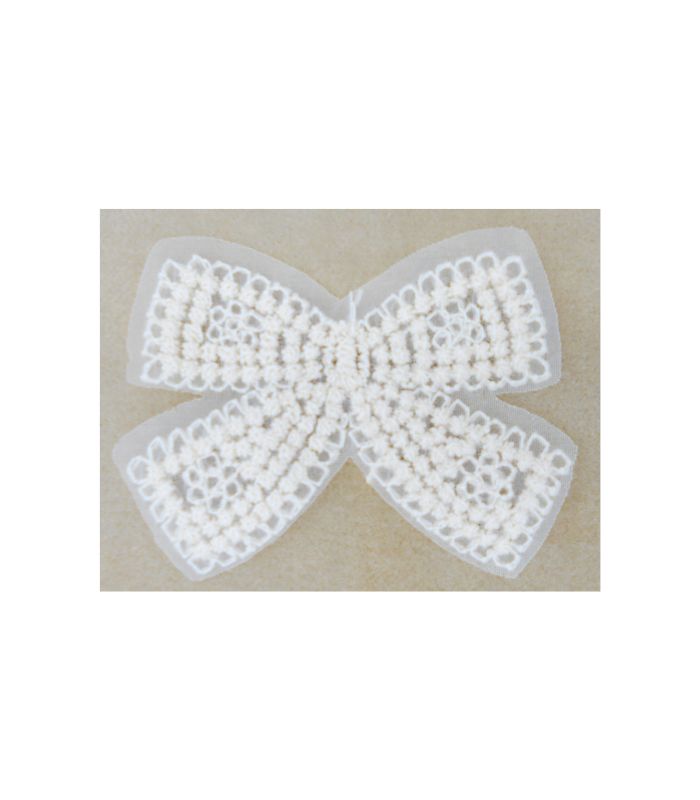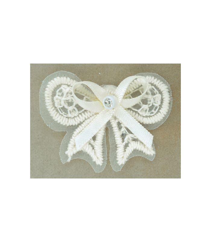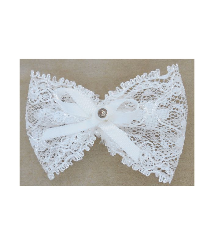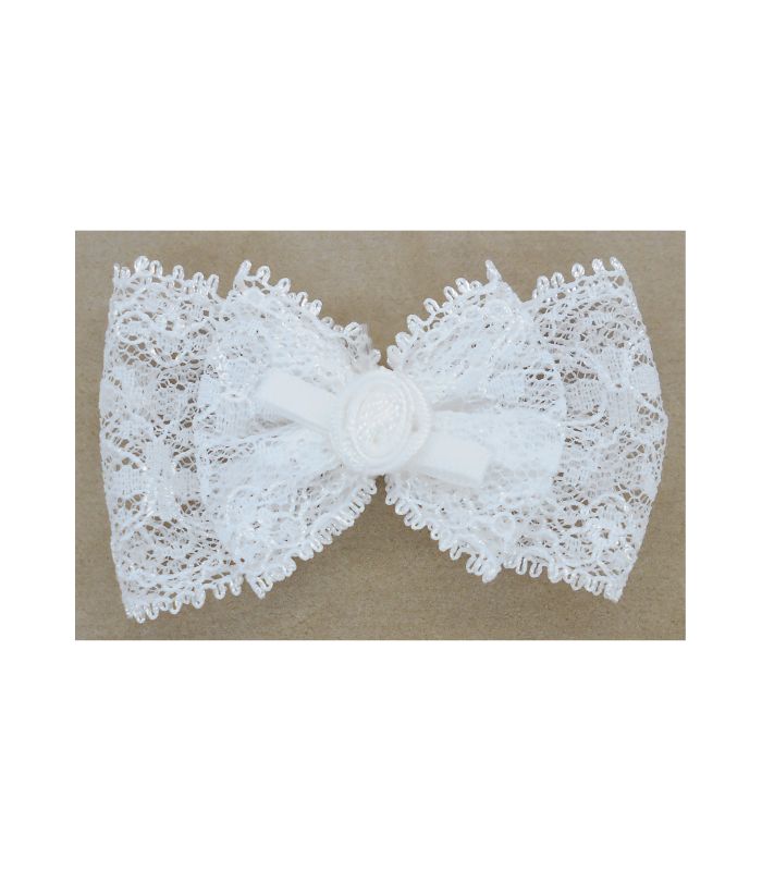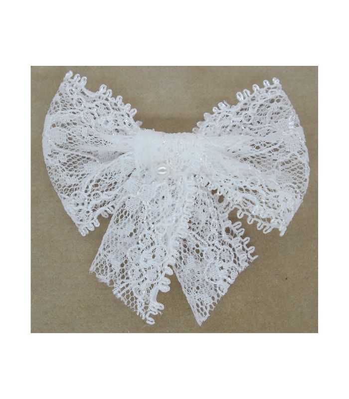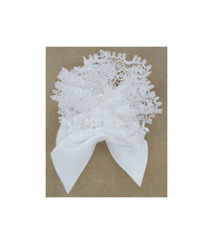 Cod. Art. 79018COL01 coccardina pizzo con fiocco raso bianco ottico