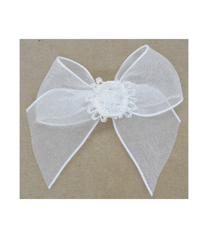 Cod. Art. 79014COL01 fiocco organza con fiocco pizzo bianco ottico