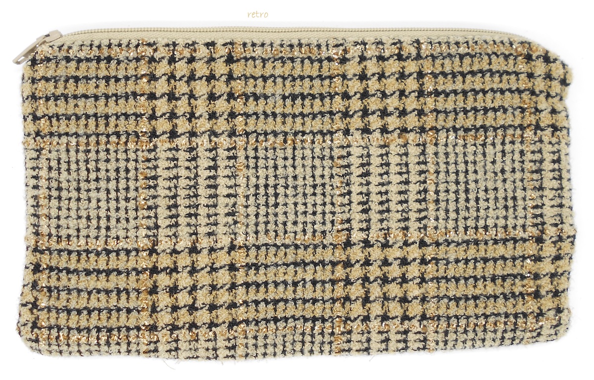 Pochette cm 19×11 tessuto con rilievi in velluto, guarnizioni in metallo con pietre, interno in seta