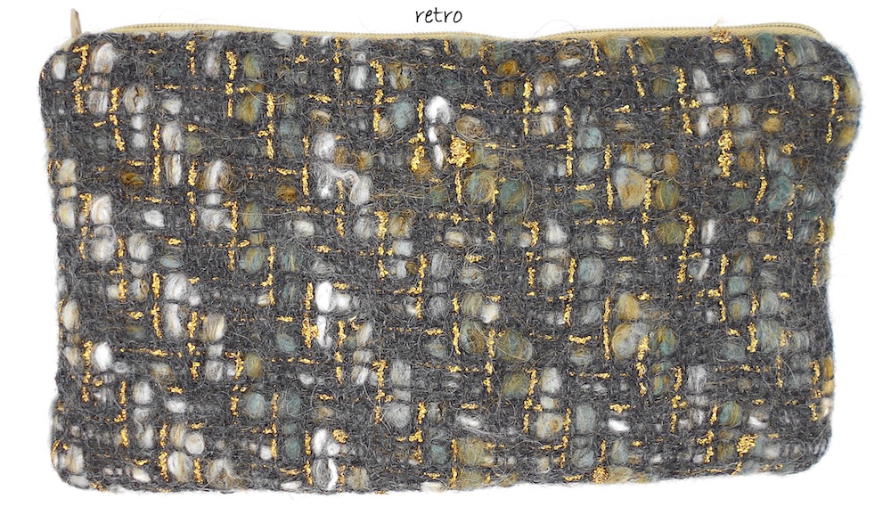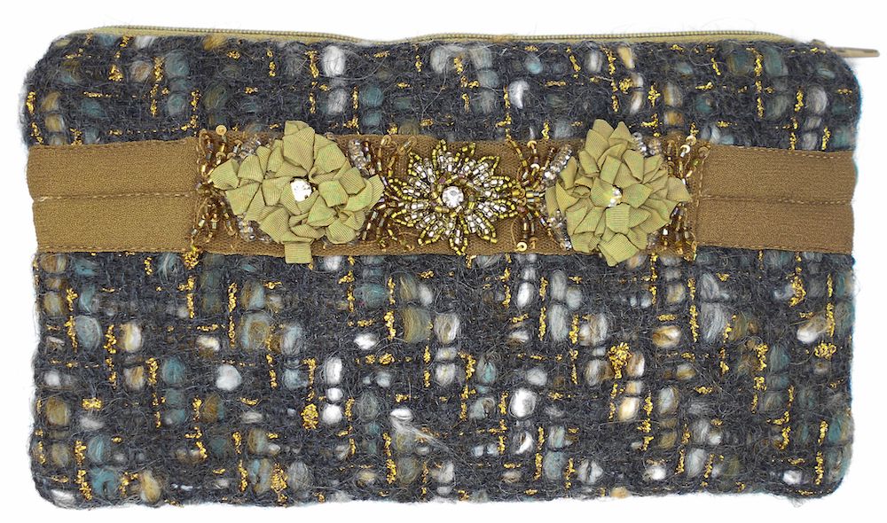 Cod. Art. PO020 Pochette Made in Italy tessuto lana lavorato, applicazione ricamata in seta e perline SPEDIZIONE GRATUITA IN ITALIA